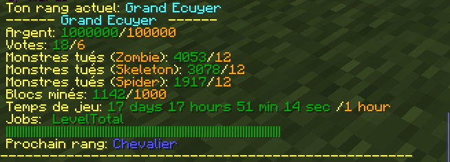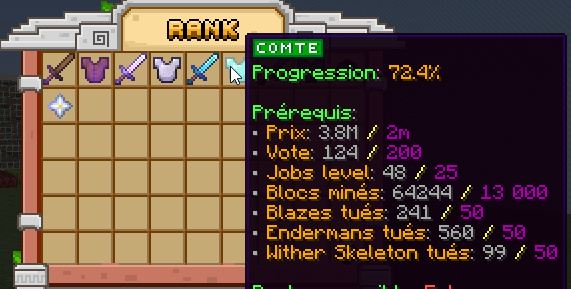 Pour passer de rang en rang, il vous suffira de remplir les conditions visible en faisant /rankinfo.